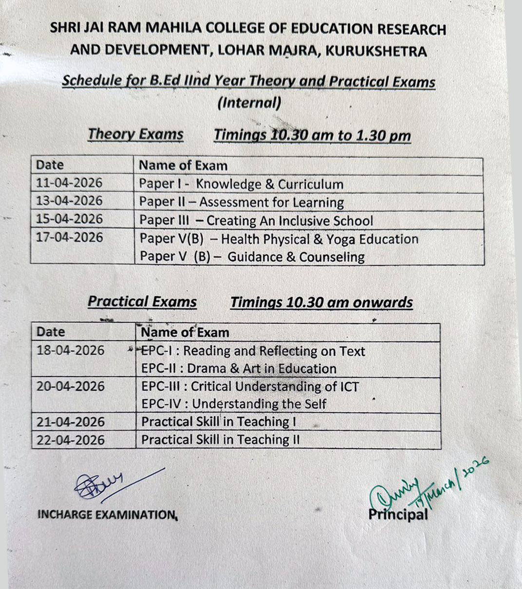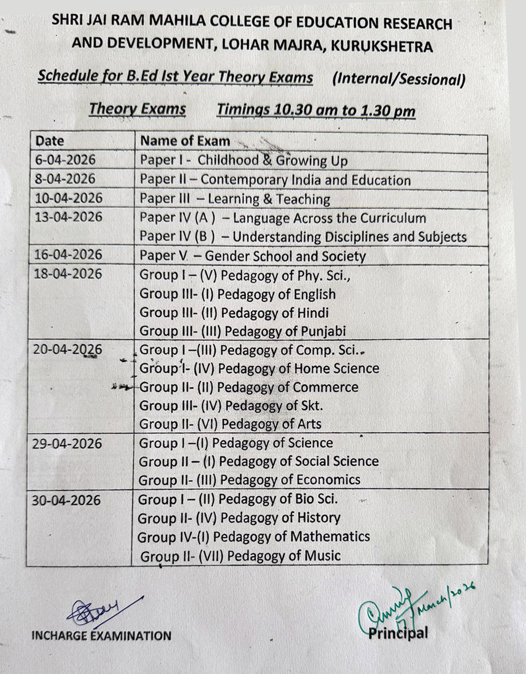 Exams Schedule